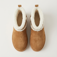 Ces bottines pour fille camel sont le choix parfait pour l’hiver : un look tendance et cocooning. La tige aspect suédine/daim apporte une finition douce et élégante, tandis que la bordure effet mouton (doublure visible) garde les pieds bien au chaud.